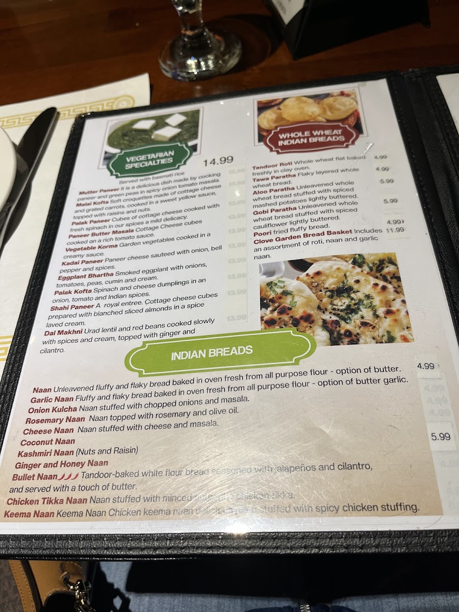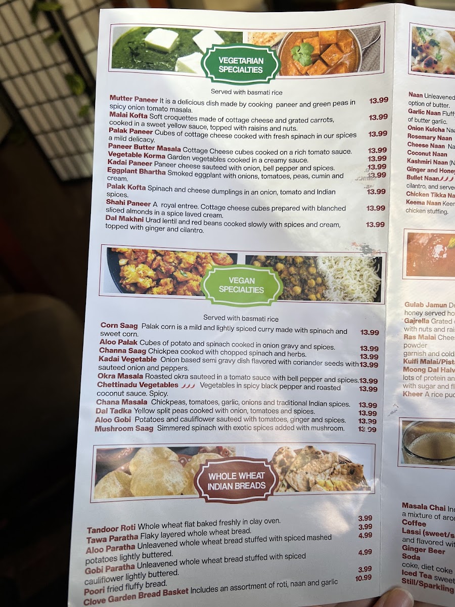 Cubes of cottage cheese cooked with fresh spinach in our spices a mild delicacy.
