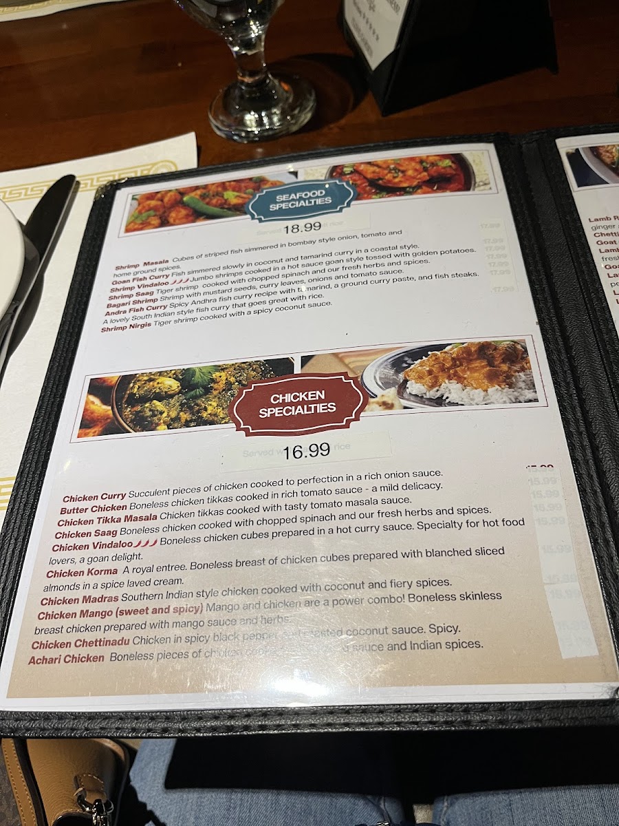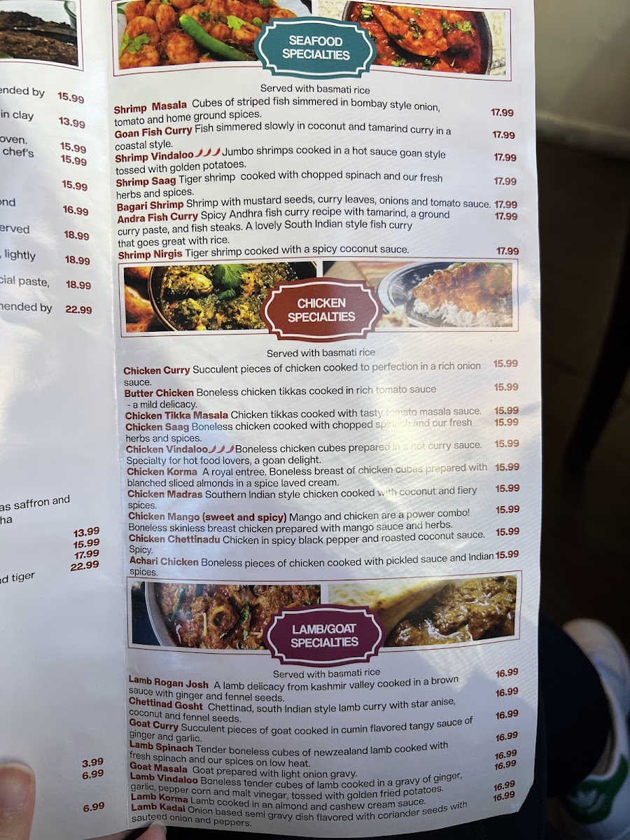 Cubes of striped fish simmered in bombay style onion, tomato and home ground spices..