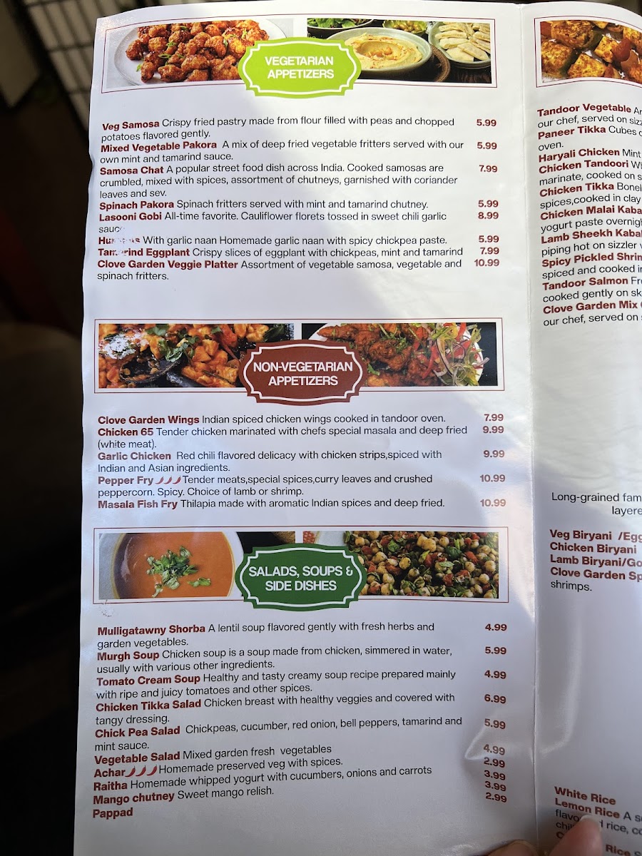 Chickpeas, cucumber, red onion, bell peppers, tamarind and mint sauce.